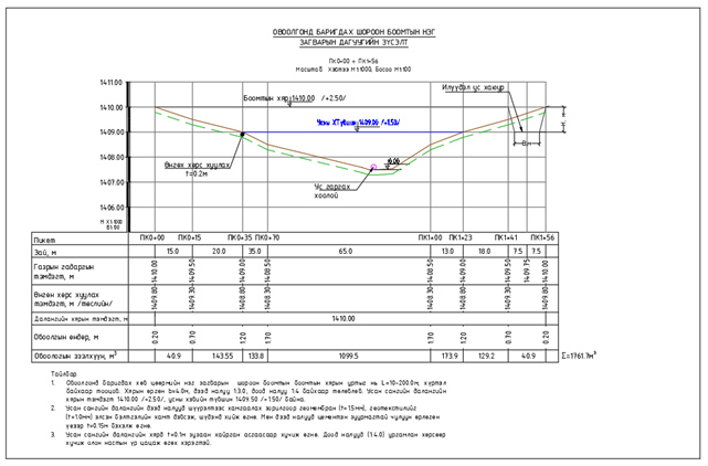 Дөхүүлэх сувгийн хийцийг ухлаганд хийж чулуун доторлогоотой байхаар төлөвлөв. Дөхүүлэх сувгийн ёроолын өргөнийг b=0.3м, 0.5м, гүнийг h=0.3м, 0.5м, L=100.0м байхаар ажлын хэмжээг тооцож төсөвт тусгаж өгсөн болно.